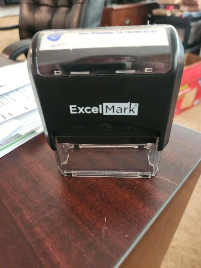Our Self-Inking Stamps by ExcelMark have a two-sided ink pad that doubles the number of impressions before its necessary to re-ink or replace the ink pad. When one side runs out just pull the ink pad out, turn it over and re-insert to double the life of the ink.